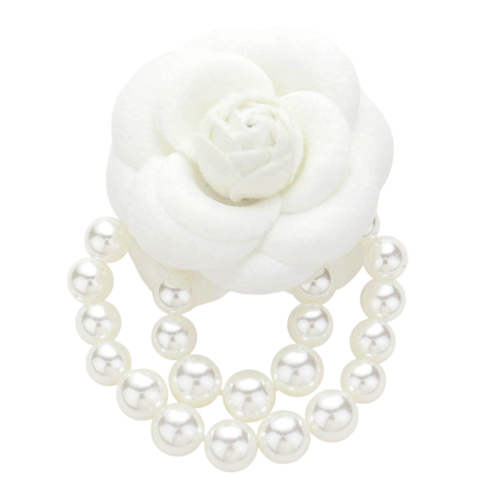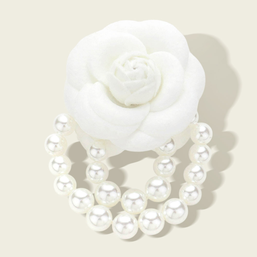 Felt Rose Pointed Pearl Embellished Pin Brooch