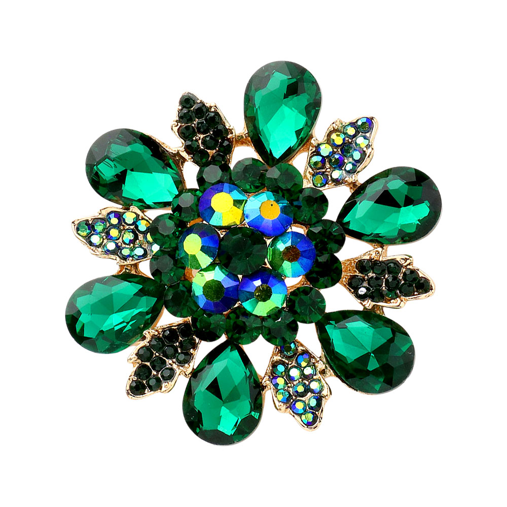 Floral Glass Stone Pin Brooch Floral Glass Stone Pin Brooch Floral Glass Stone Pin Brooch