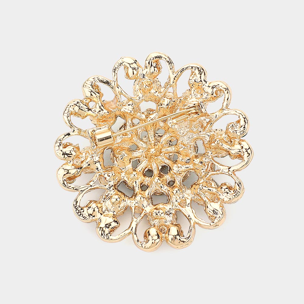 Floral Heart Crystal Rhinestone Brooch