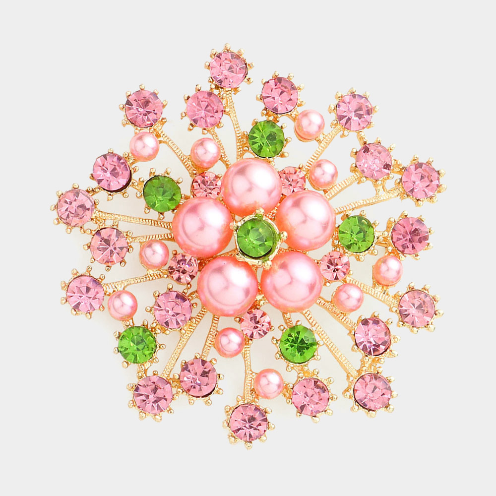 Cluster Pearl Rhinestone Pave Flower Brooch