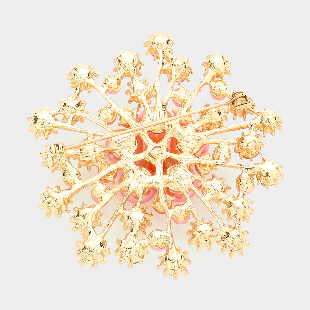 Pearl Centered Crystal Pave Flower Pin Brooch