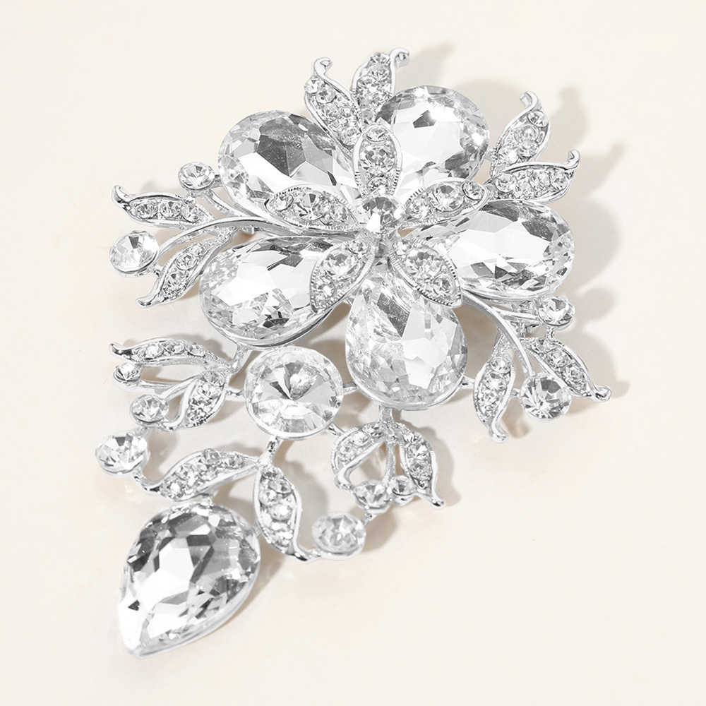 • Glamorous rhinestone flower brooch featuring intricate floral design with sparkling accents. Perfect for elevating dresses, scarves, jackets, or evening wear. A bold statement piece that adds luxury and timeless charm, making it an ideal accessory for parties, weddings, or special events.
