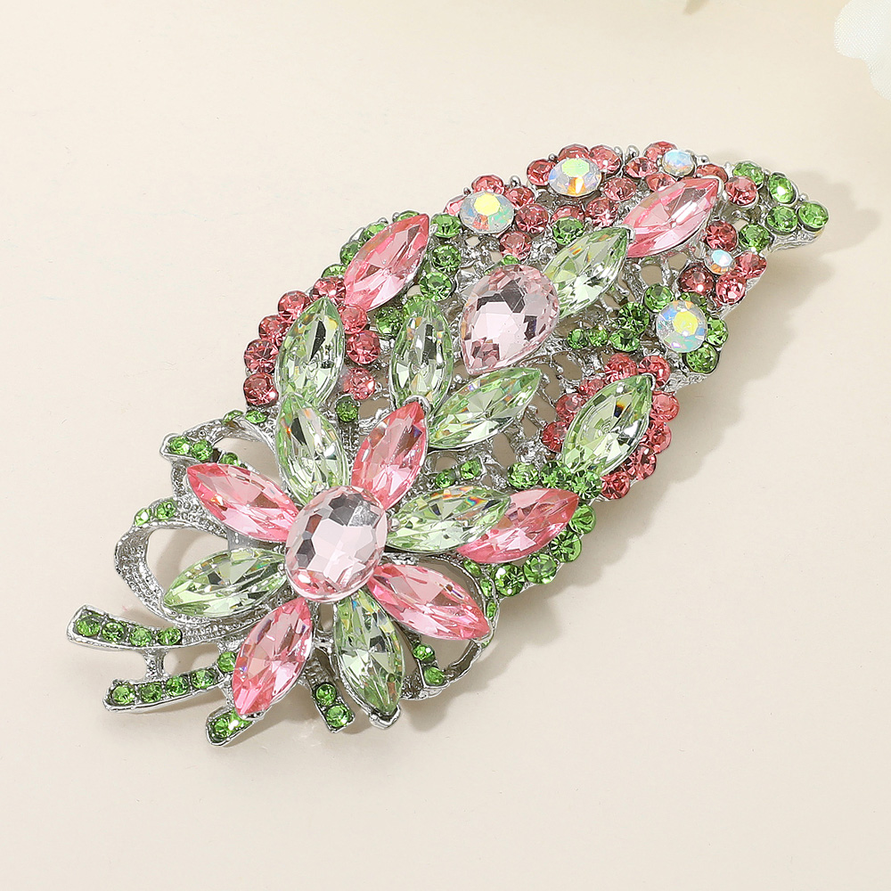 Flower Stone Cluster Pointed Glass Stone Embellished Leaf Pin Brooch