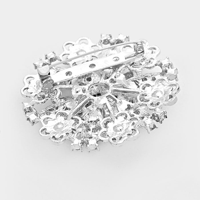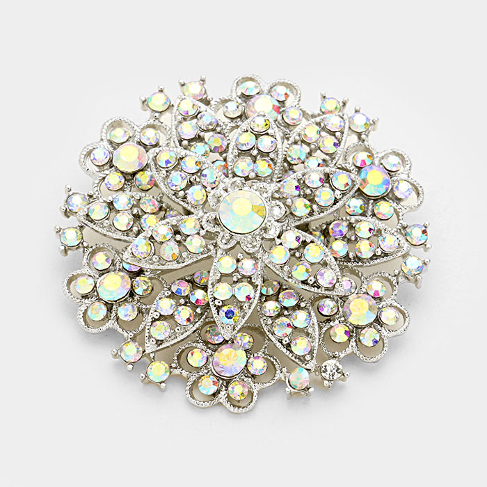 Flower Stone Cluster Pointed Glass Stone Embellished Leaf Pin Brooch