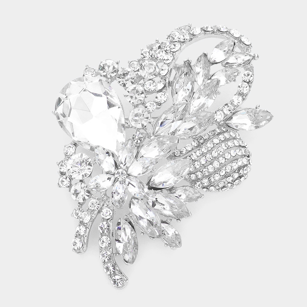 Oval Stone Accented Leaf Detailed Bouquet Pin Brooch