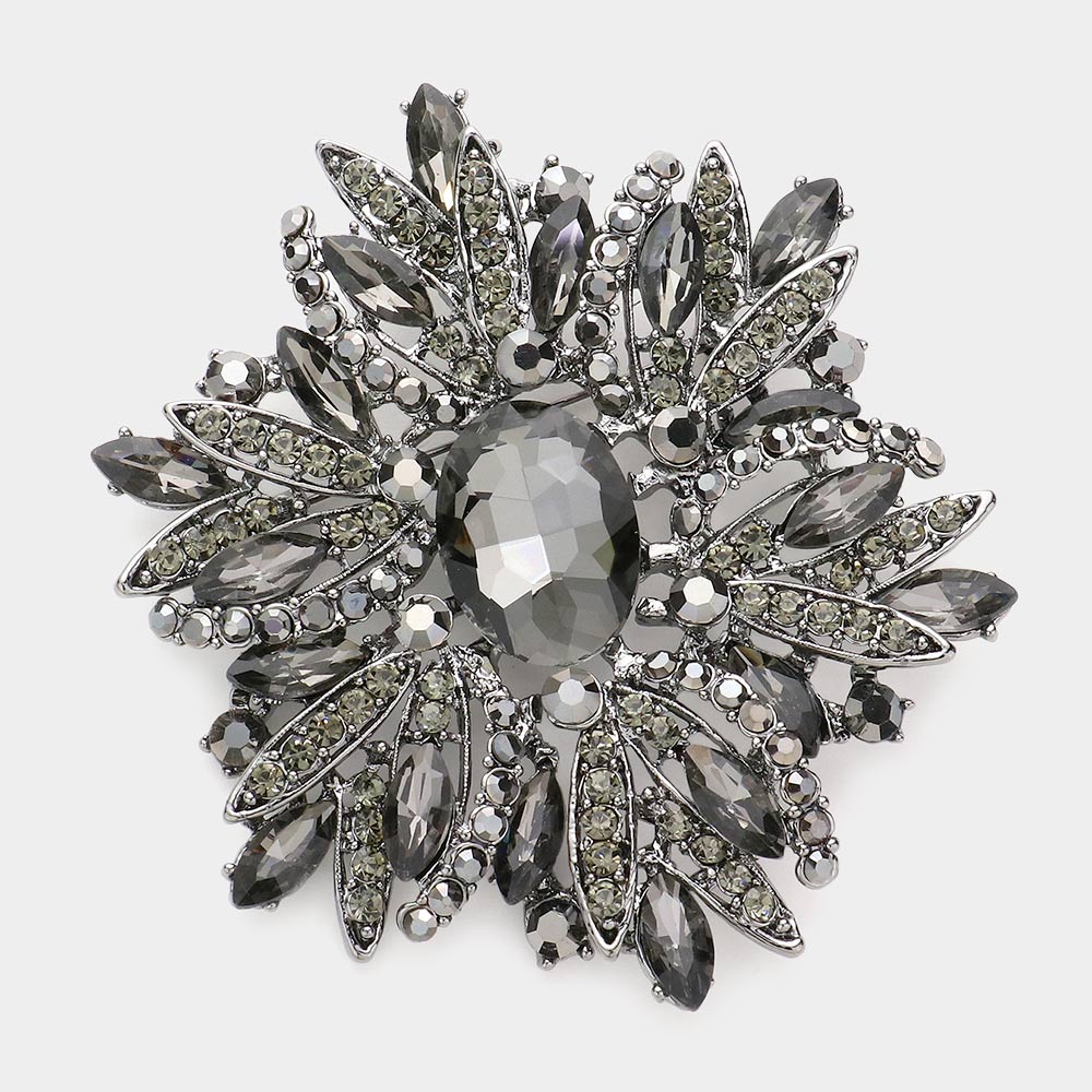 Glass Crystal Flower Brooch / Pendant