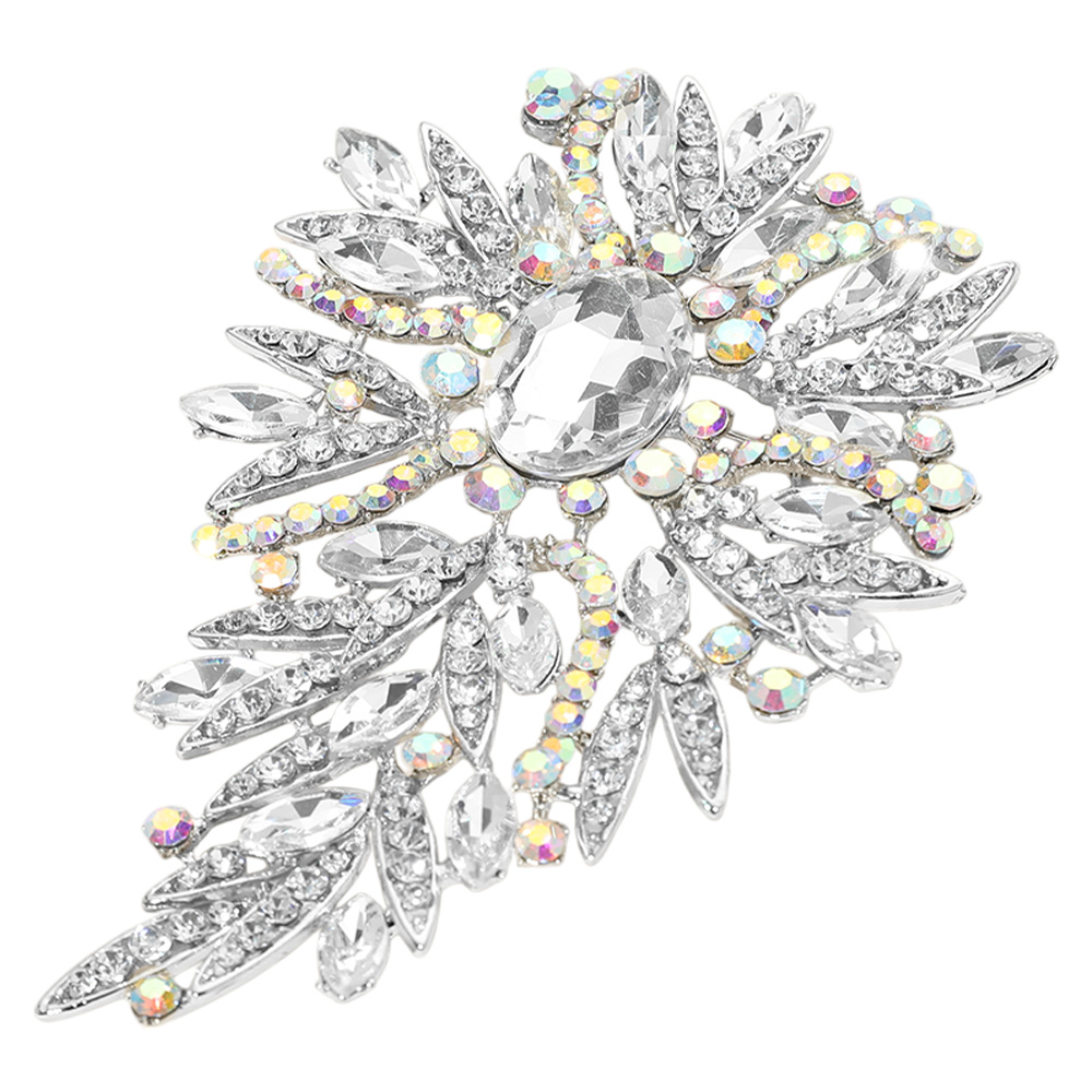 Glass Stone Cluster Embellished Floral Pin Brooch