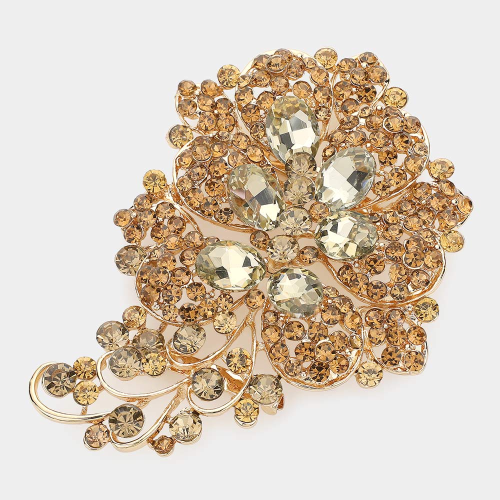 Glass Stone Flower Pin Brooch