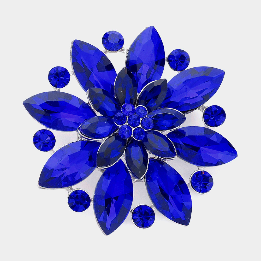 Marquise Stone Accented Flower Pin Brooch