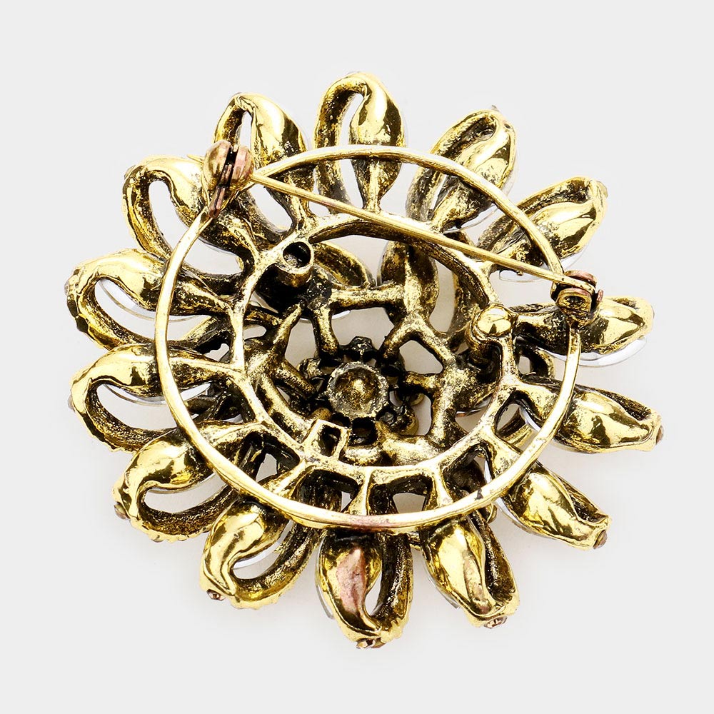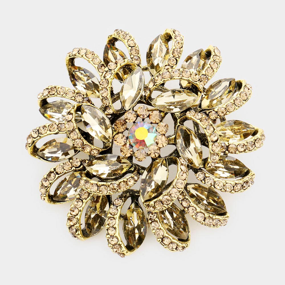 Marquise Stone Detail Flower Pin Brooch