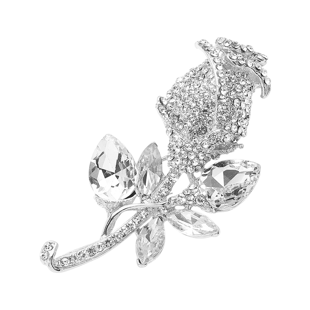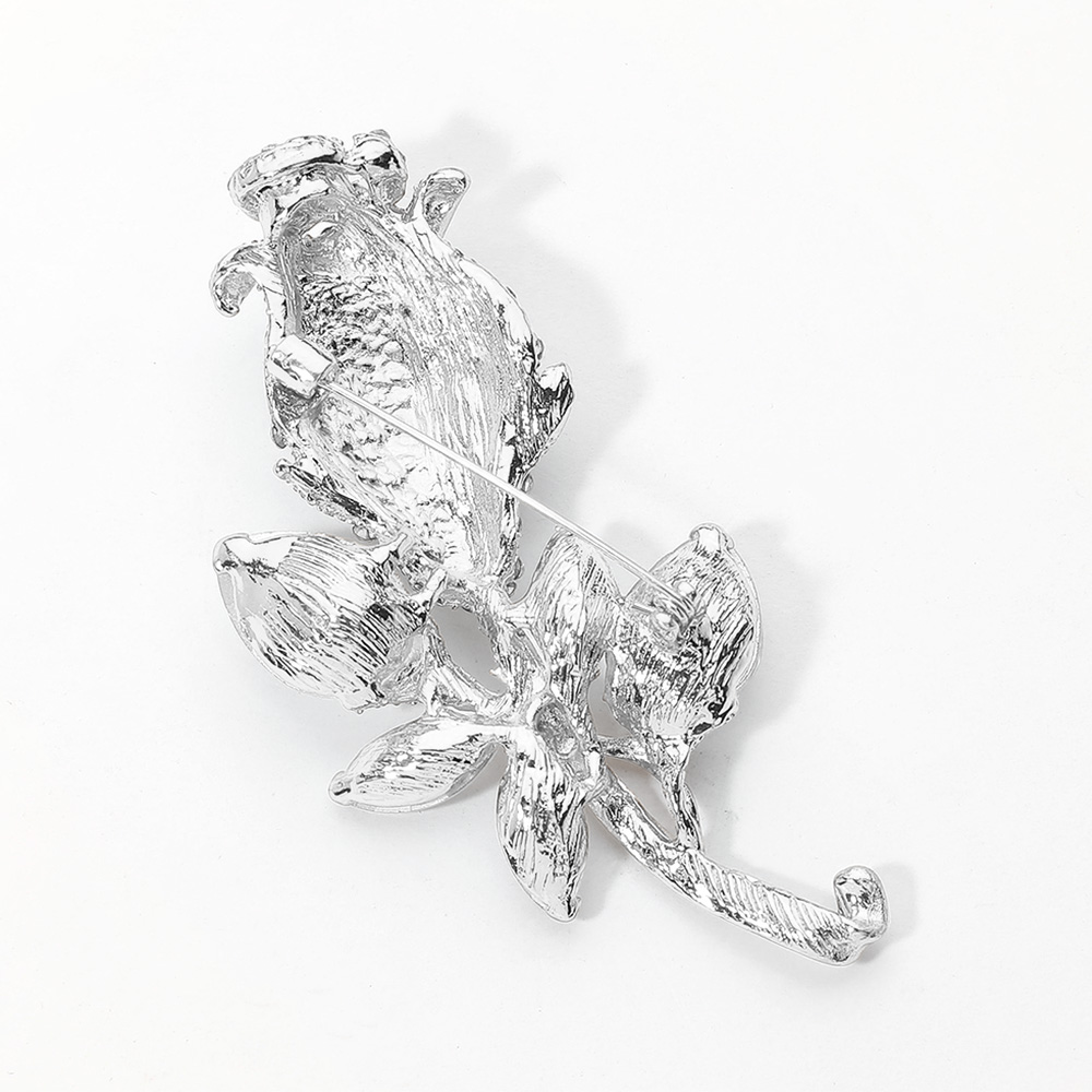 Multi Stone Embellished Metal Tulip Flower Pin Brooch
