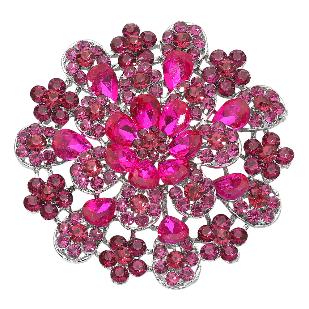 Details • Size : 3.7" L • Pin Brooch • Brilliant flower brooch adorned with iridescent crystals in layered petal design. A dazzling statement piece for dresses, scarves, or jackets, adding glamour and elegance to weddings, parties, or special occasions. • Lead and Nickel Compliant