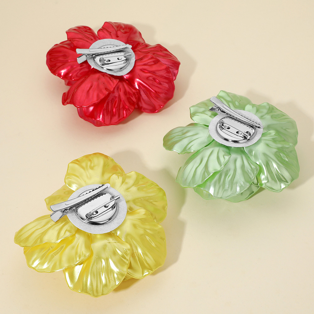 Details • Size : 4.25" X 4" • Dual : Pin Brooch / Hair Clip • Elegant flower accessory featuring layered petals and a pearl center, designed for dual use as a hair clip or brooch. A versatile piece that adds charm to hairstyles, outfits, or accessories, perfect for special occasions or daily wear.