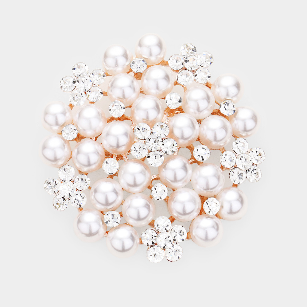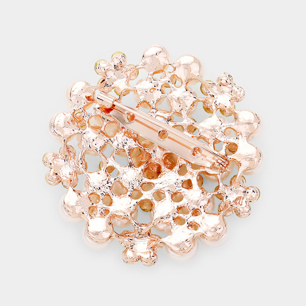 Pearl Crystal Floral Pin Brooch