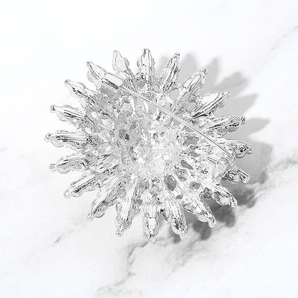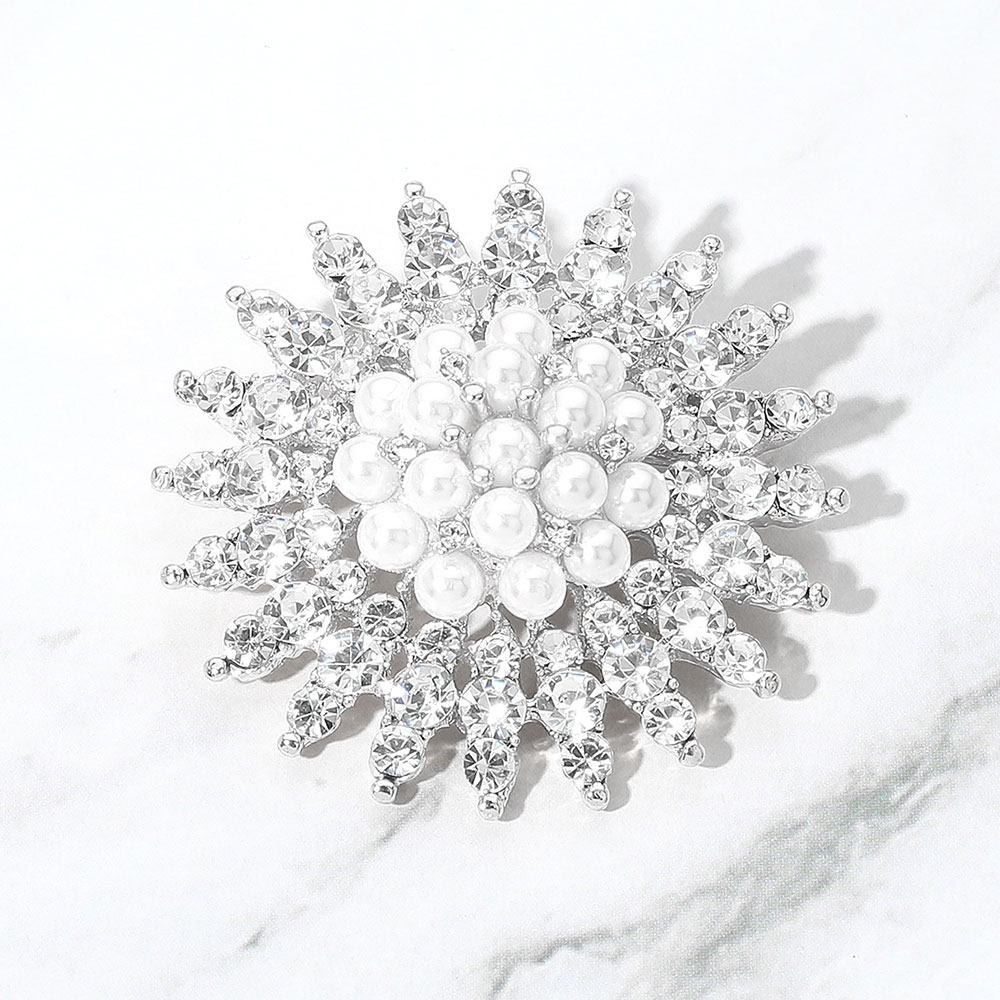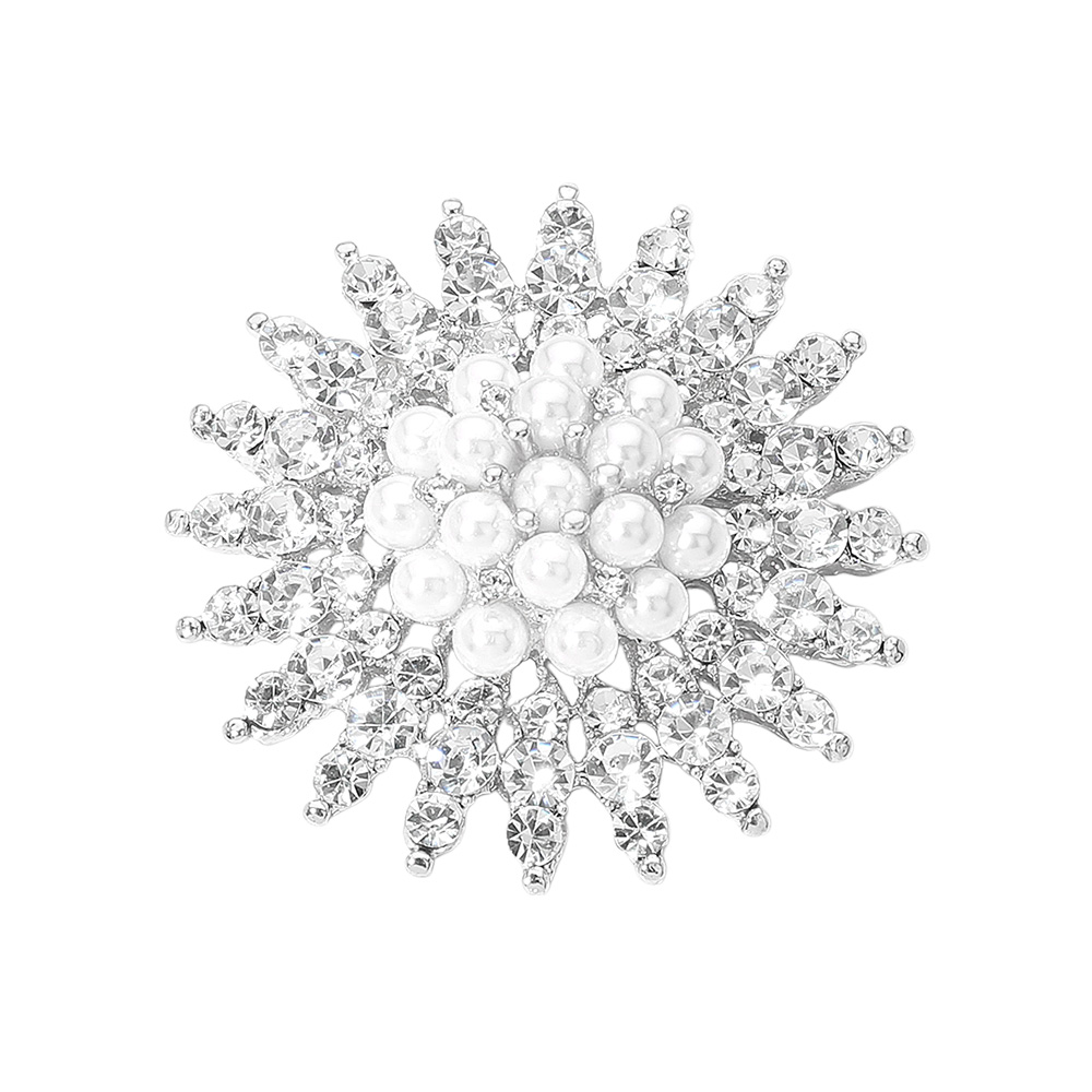 Pearl Embellished Stone Paved Flower Pin Brooch