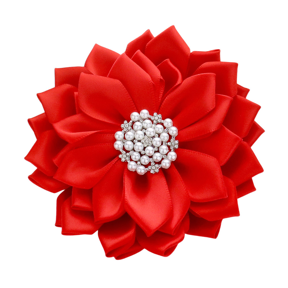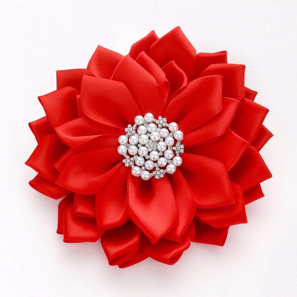 Pearl Pointed Flower Ribbon Brooch / Hair Clip
