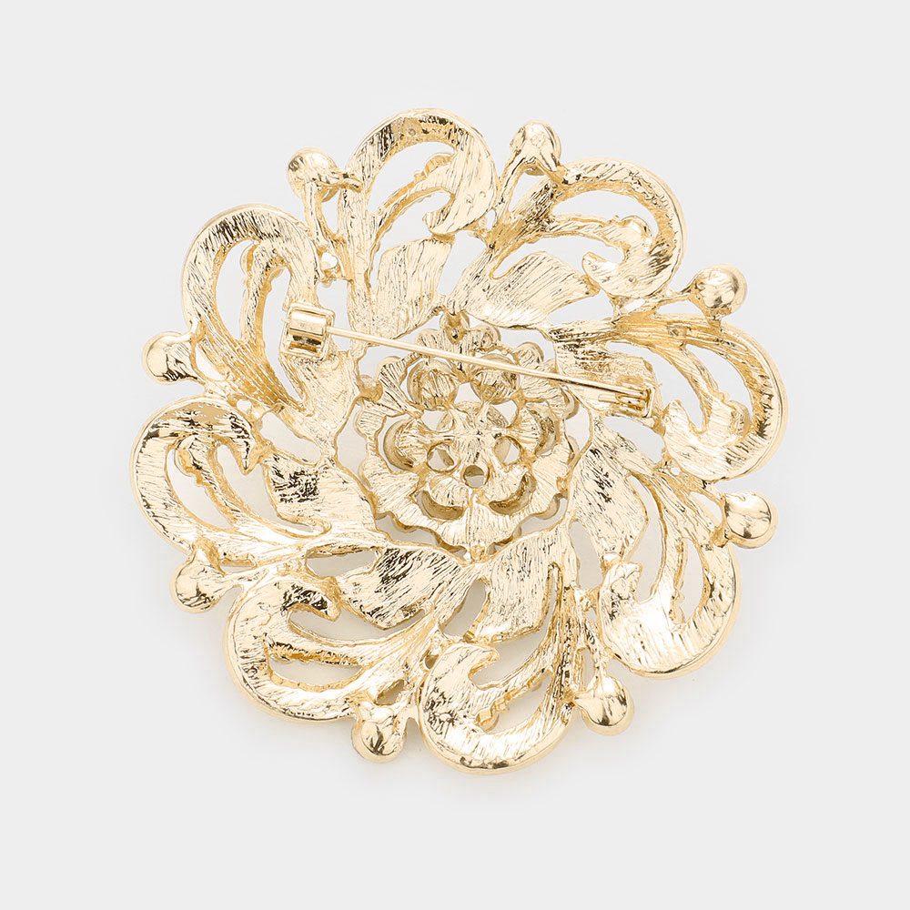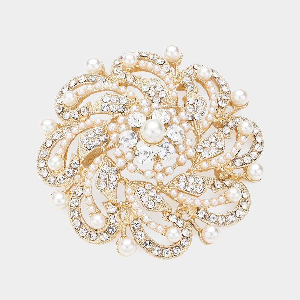 Pearl Accent Floral Pin Brooch / Hair Clip
