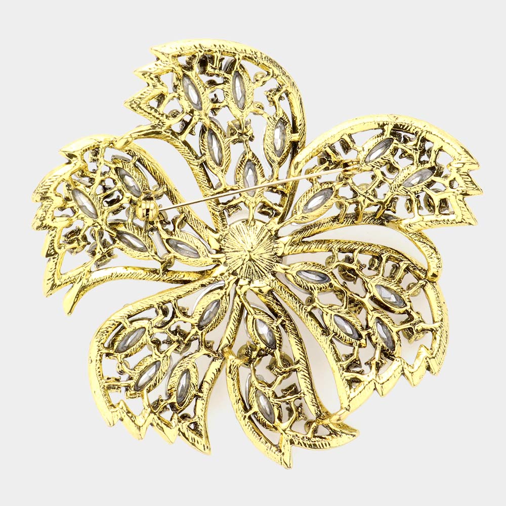 Stone Embellished Oversized Flower Pin Brooch