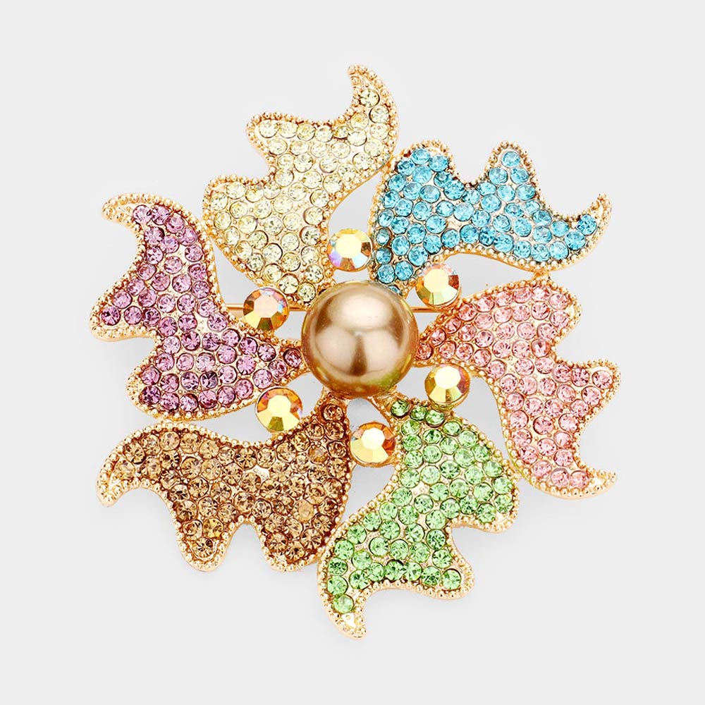 Stone Embellished Flower Pin Brooch