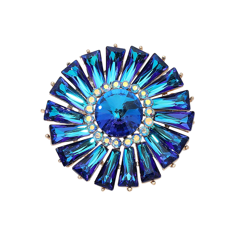 • Make a statement with this radiant burst brooch featuring a dazzling faceted gemstone centerpiece surrounded by precision-cut accents. Its bold, symmetrical design adds instant glamour, perfect for elevating evening wear, formal attire, or stylish outerwear.