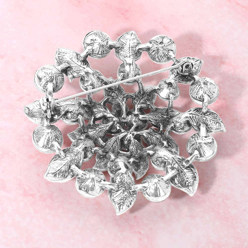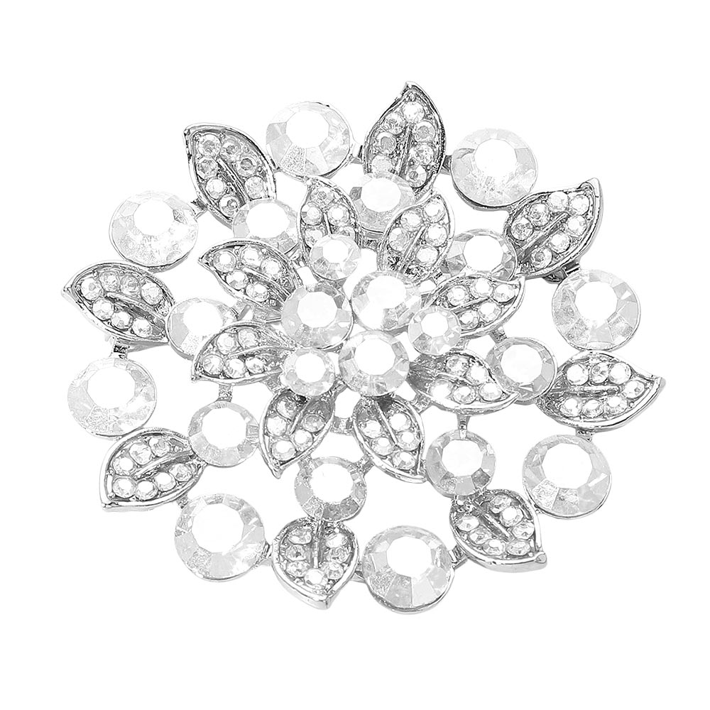 Details • Size : 2.8" X 2.8" • Pin Brooch • Enhance your style with this crystal flower brooch, designed with sparkling stones arranged in a floral and leaf motif. A versatile accessory perfect for weddings, parties, or daily wear, this elegant pin adds charm to jackets, scarves, handbags, or hats and makes a thoughtful gift for someone special. • Lead and Nickel Compliant