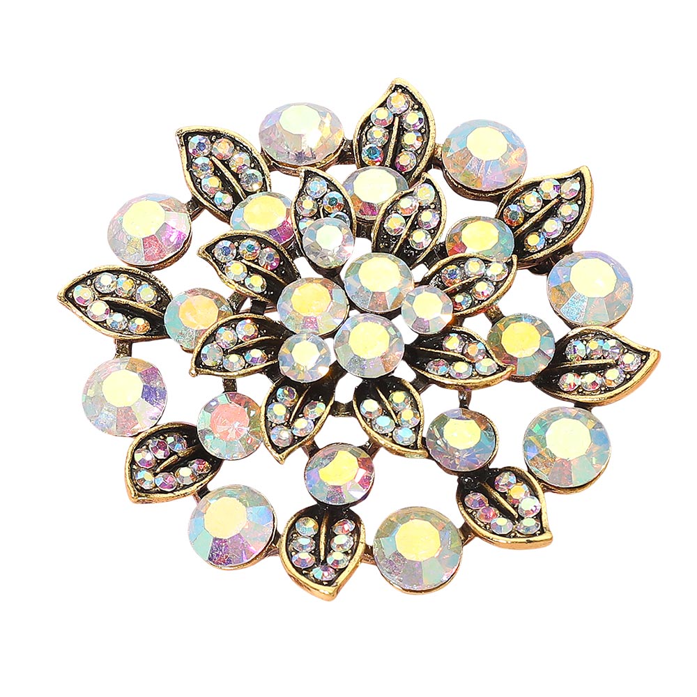 • Enhance your style with this crystal flower brooch, designed with sparkling stones arranged in a floral and leaf motif. A versatile accessory perfect for weddings, parties, or daily wear, this elegant pin adds charm to jackets, scarves, handbags, or hats and makes a thoughtful gift for someone special.