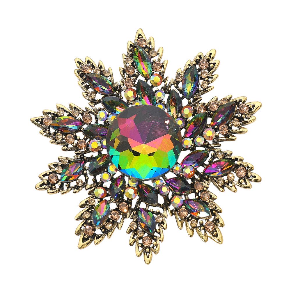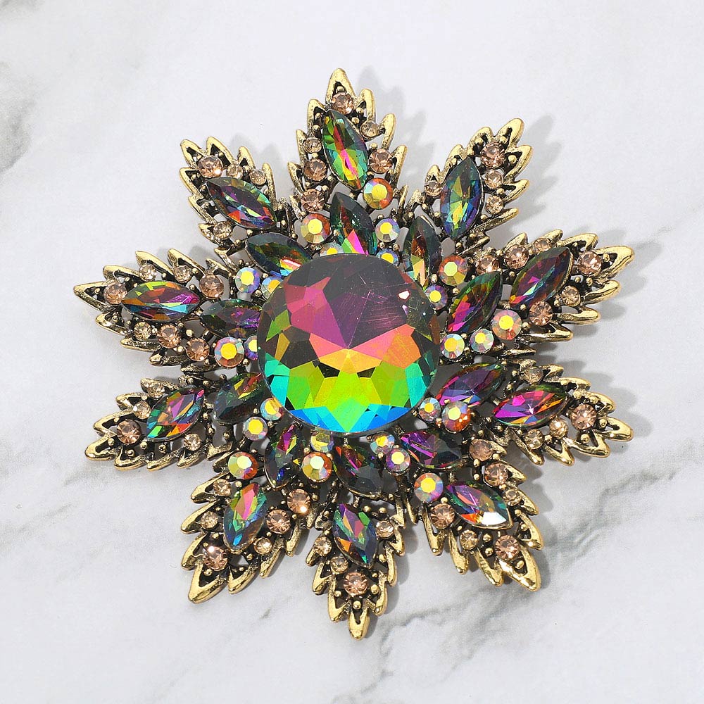 Details • Size : 3.3" X 3.5" • Pin Brooch • Make a statement with this crystal floral starburst brooch, featuring a radiant layered design and a brilliant center stone that catches the light beautifully. A versatile accessory for elevating jackets, scarves, handbags, or special occasion looks. • Lead and Nickel Compliant