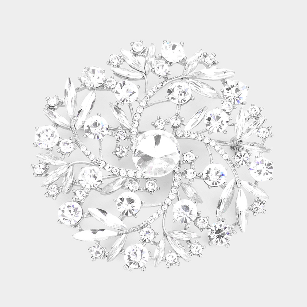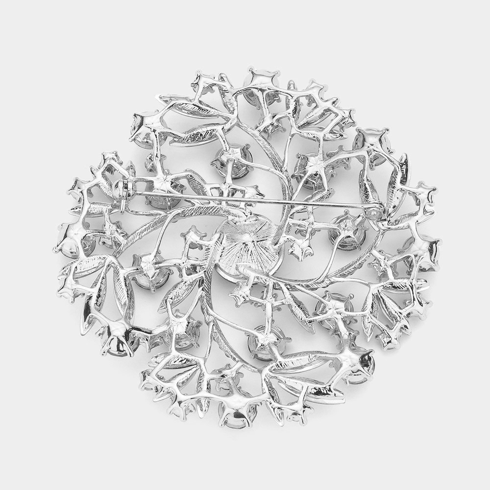 Pearl Rhinestone Embellished Flower Vine Brooch