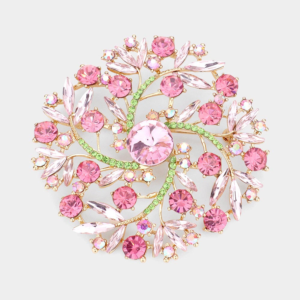 Pearl Rhinestone Embellished Flower Vine Brooch
