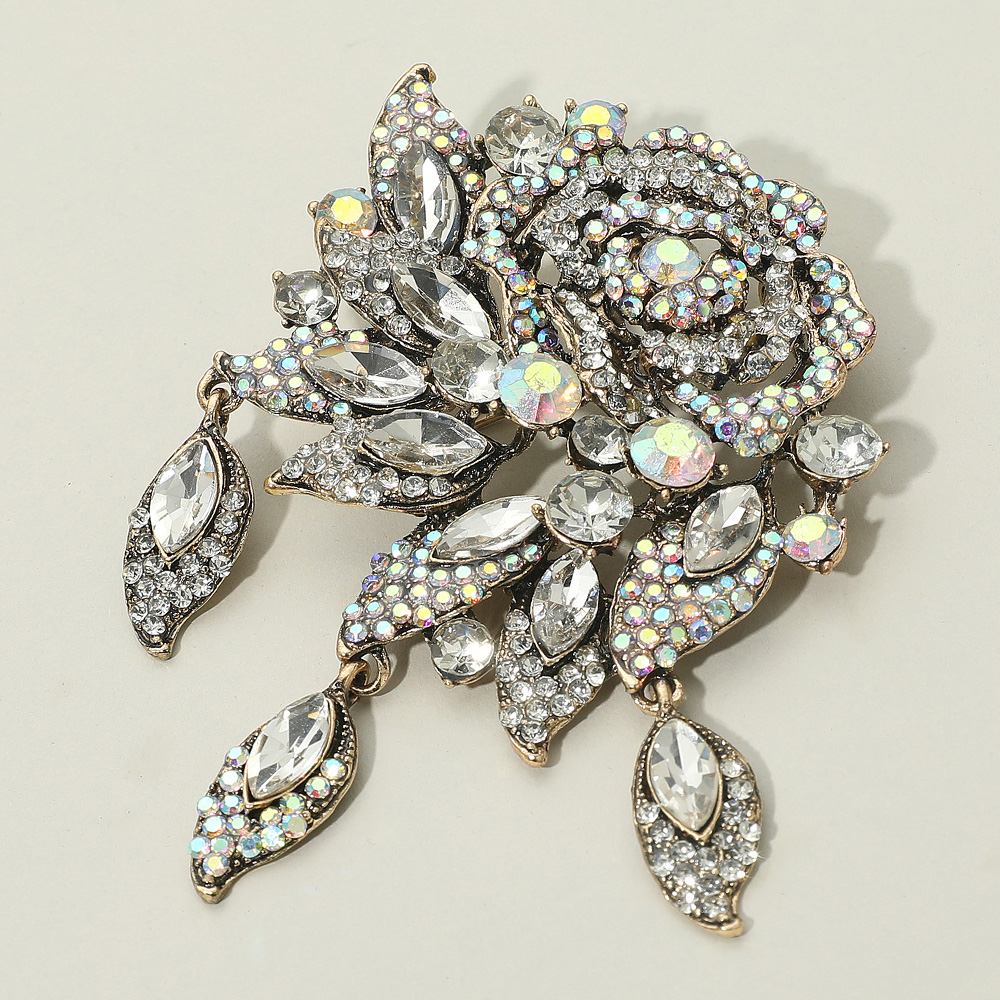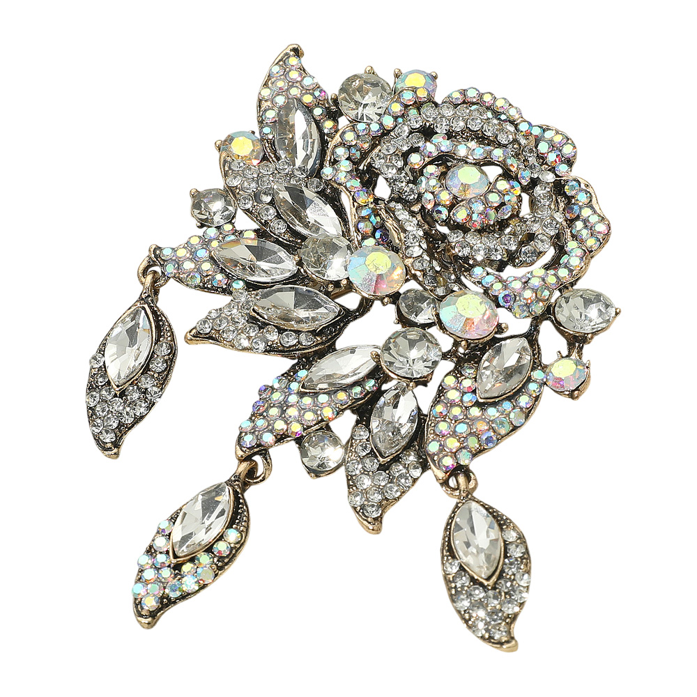 Details • Size : 3.75" X 4.25" • Pin Brooch • Add timeless elegance to your style with this sparkling rose brooch, featuring a detailed floral design with dazzling accents. Perfect for special occasions or everyday charm, this statement pin makes a stunning accessory and a thoughtful gift for flower and jewelry lovers alike. • Lead and Nickel Compliant