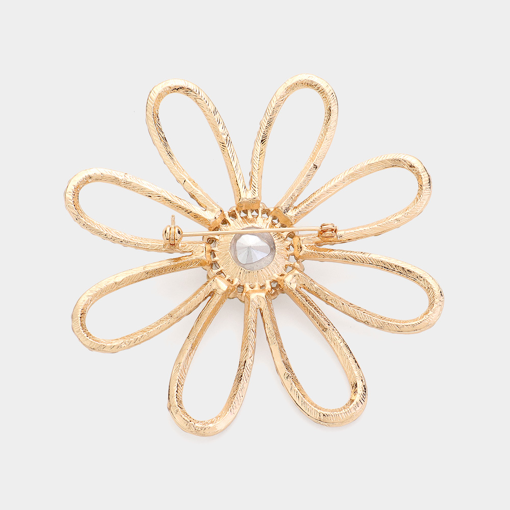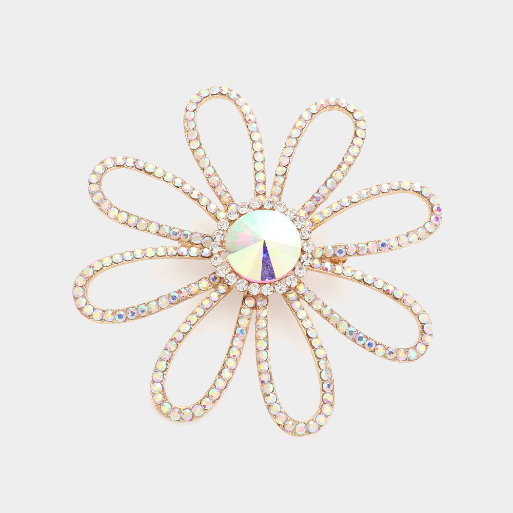 Oval Glass Stone Embellished Rhinestone Paved Flower Stretch Ring