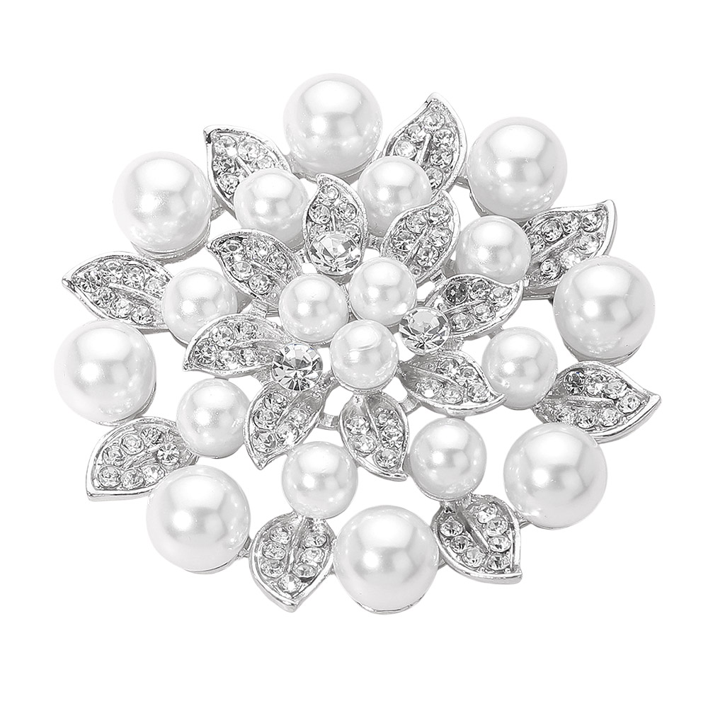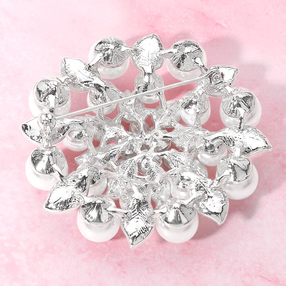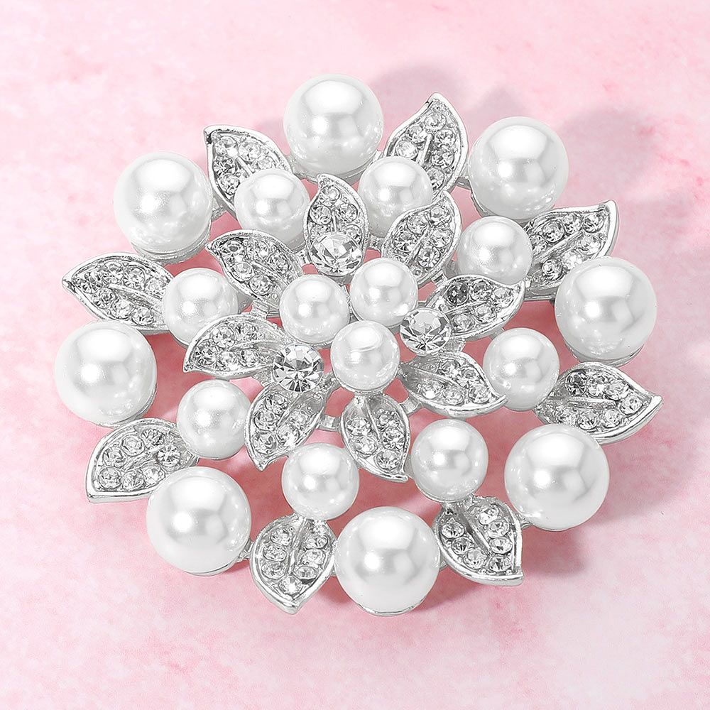 Rhinestone Pearl Embellished Elegant Floral Pin Brooch