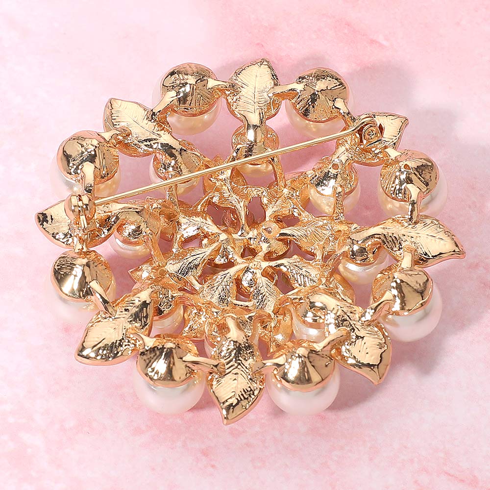 Details • Size : 2.8" X 2.8" • Pin Brooch • Enhance your style with this crystal flower brooch, designed with sparkling stones arranged in a floral and leaf motif. A versatile accessory perfect for weddings, parties, or daily wear, this elegant pin adds charm to jackets, scarves, handbags, or hats and makes a thoughtful gift for someone special. • Lead and Nickel Compliant