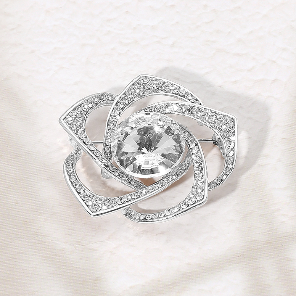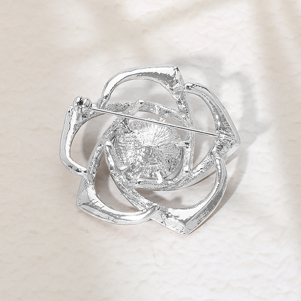 Pearl Pointed Stone Paved Flower Pin Brooch