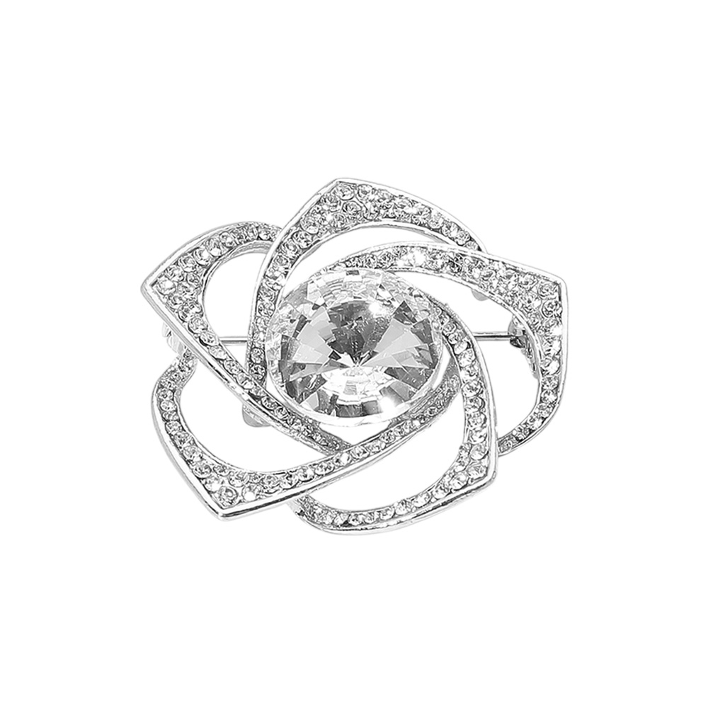 Round Glass Stone Pointed Stone Paved Flower Pin Brooch