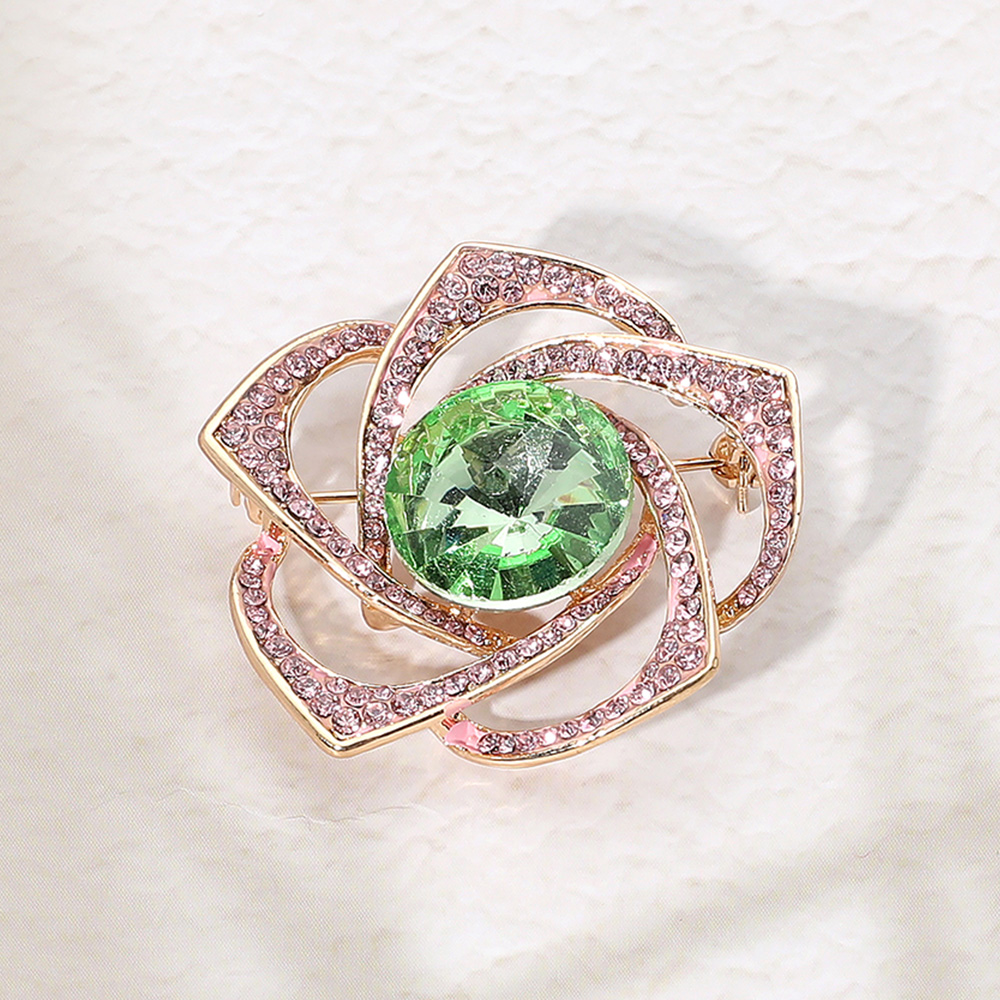 Round Glass Stone Pointed Stone Paved Flower Pin Brooch