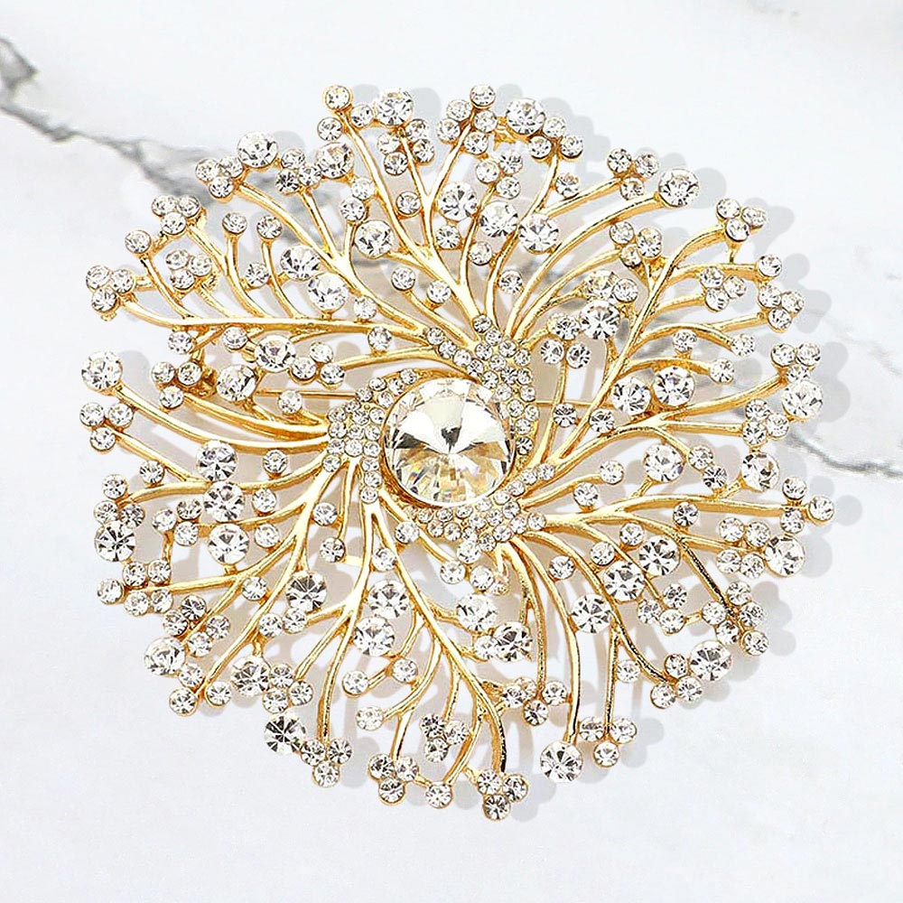 • A dazzling brooch featuring an intricate burst design that captures light beautifully for an elegant, eye-catching finish. Perfect for adding a refined touch to formal wear, accessories, or special-occasion outfits with its sparkling, detailed craftsmanship.