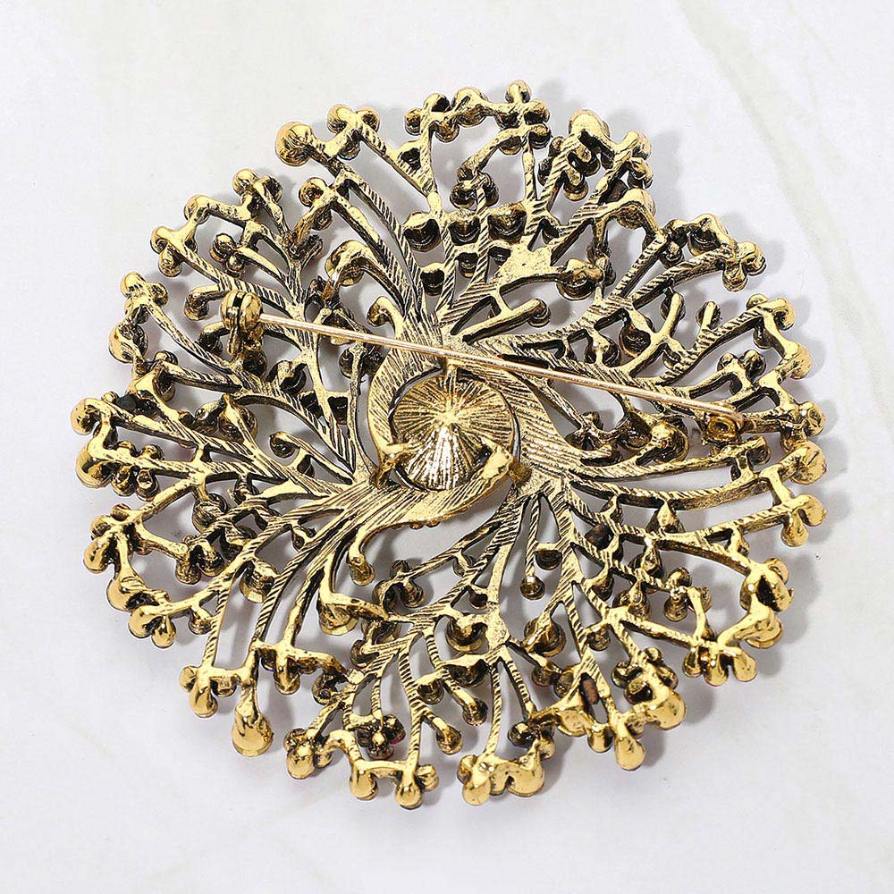 Details • Size : 3.6 X 3.6" • Pin Brooch • A dazzling brooch featuring an intricate burst design that captures light beautifully for an elegant, eye-catching finish. Perfect for adding a refined touch to formal wear, accessories, or special-occasion outfits with its sparkling, detailed craftsmanship. • Lead and Nickel Compliant