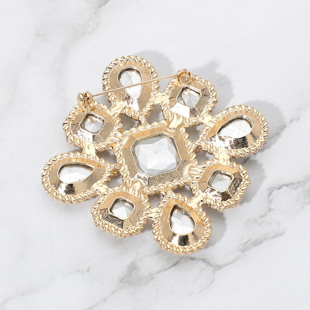 Stone Pointed Metal Cutout Flower Link Dropdown Earrings