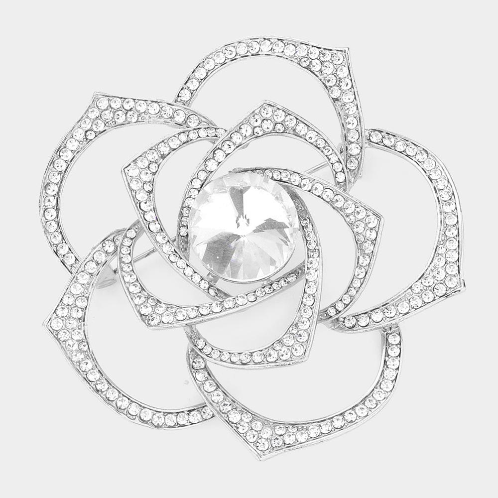 Glass Crystal Flower Cluster Bouquet Pin Brooch