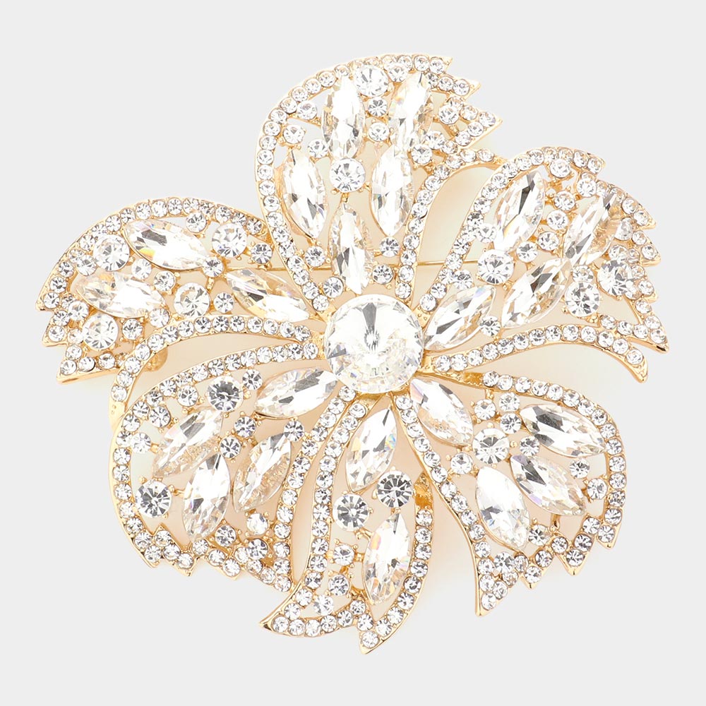 Pearl Pointed Stone Embellished Oversized Flower Pin Brooch