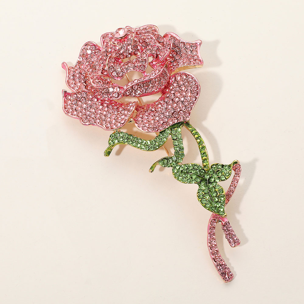 Details • Size : 1.5" X 4.75" • Pin Brooch • Dazzling rose brooch designed with shimmering crystals on petals and stem for a radiant finish. A graceful accessory for jackets, dresses, or scarves, perfect for weddings, parties, and elegant gatherings. Adds charm and brilliance to any look, making it a thoughtful gift for loved ones. • Lead and Nickel Compliant