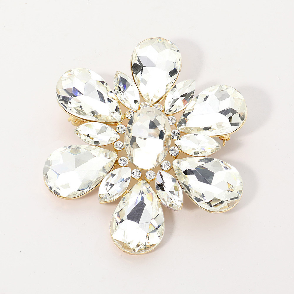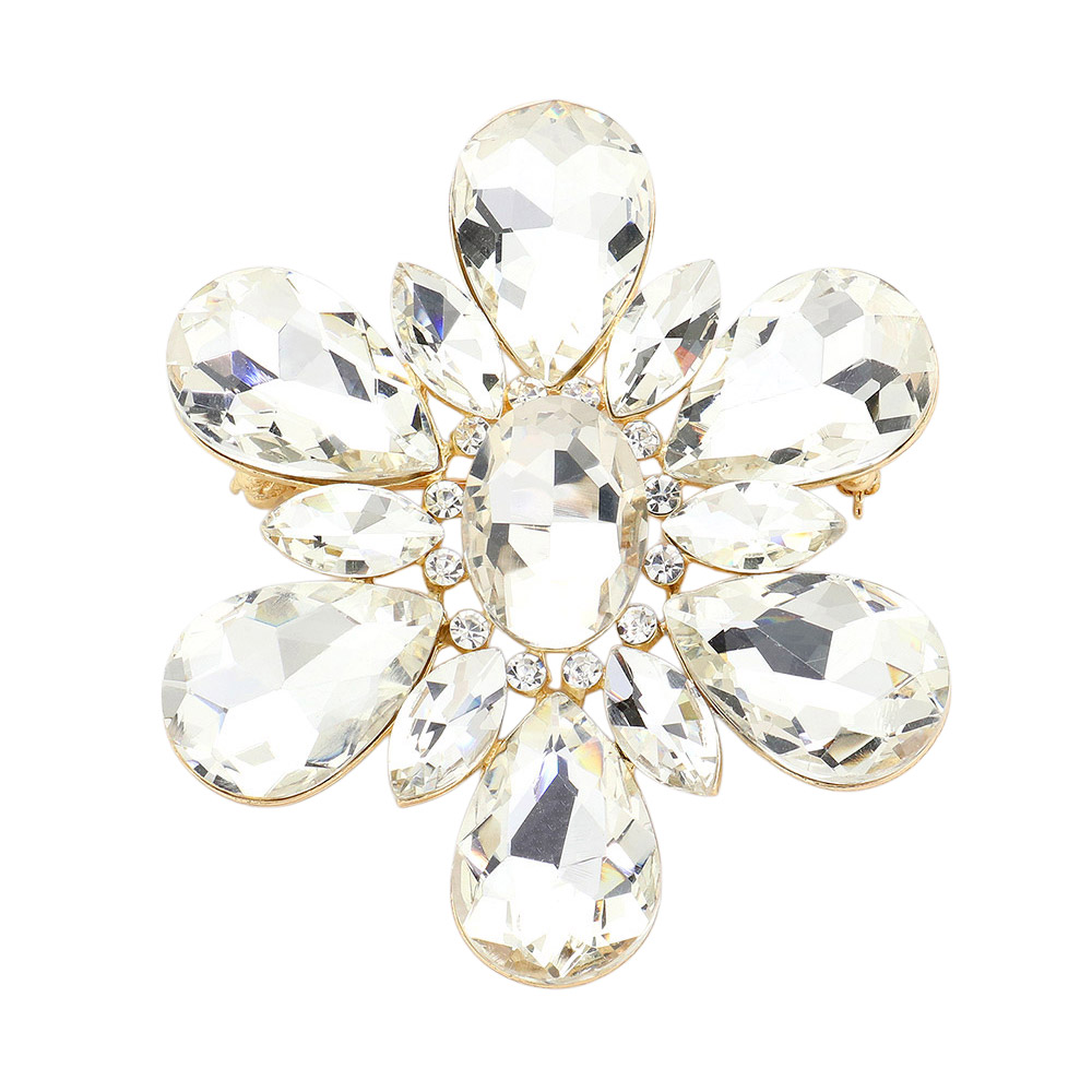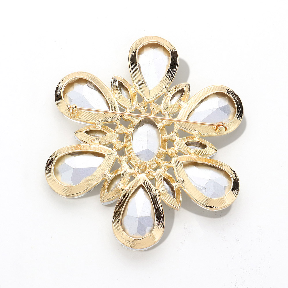 Teardrop Crystal Stone Accented Flower Pin Brooch