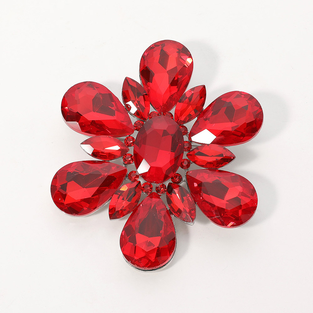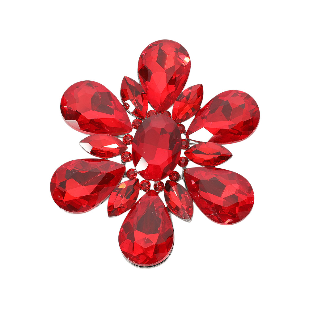 Teardrop Crystal Stone Accented Flower Pin Brooch