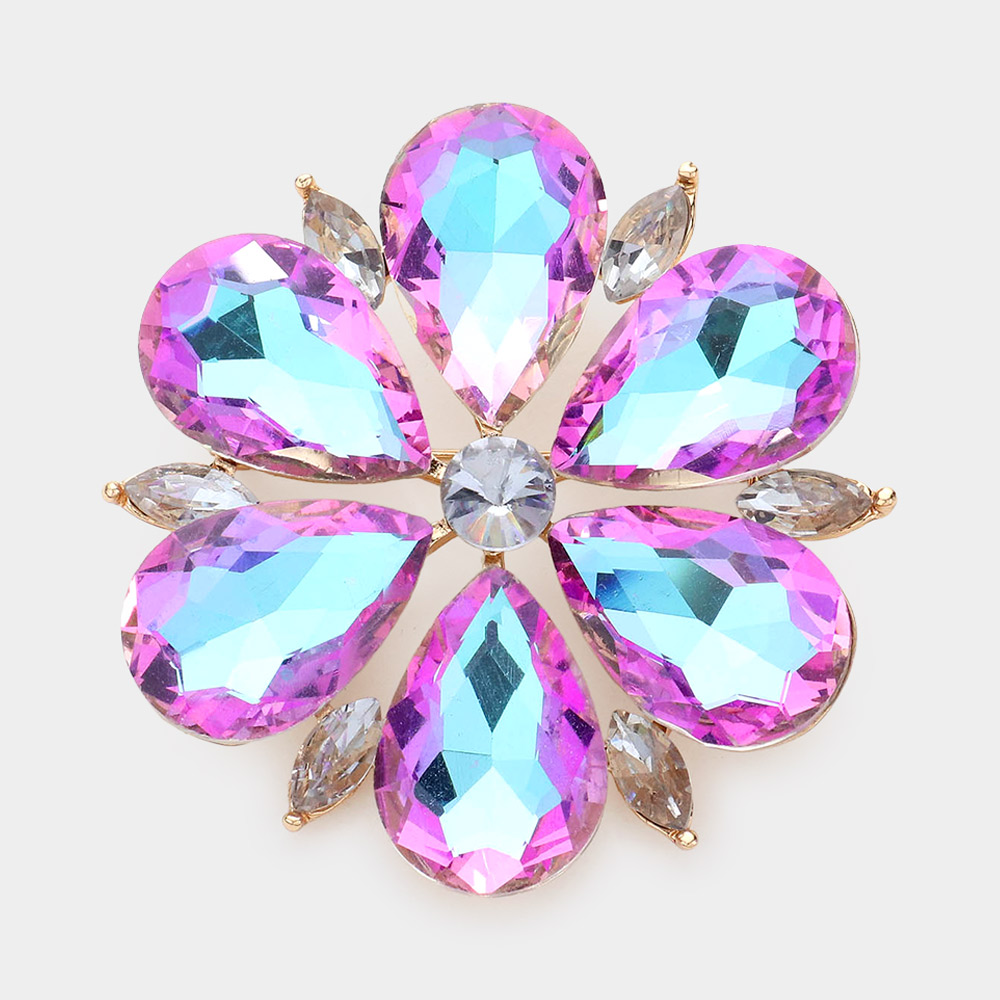 Flower Glass Stone Cluster Pin Brooch