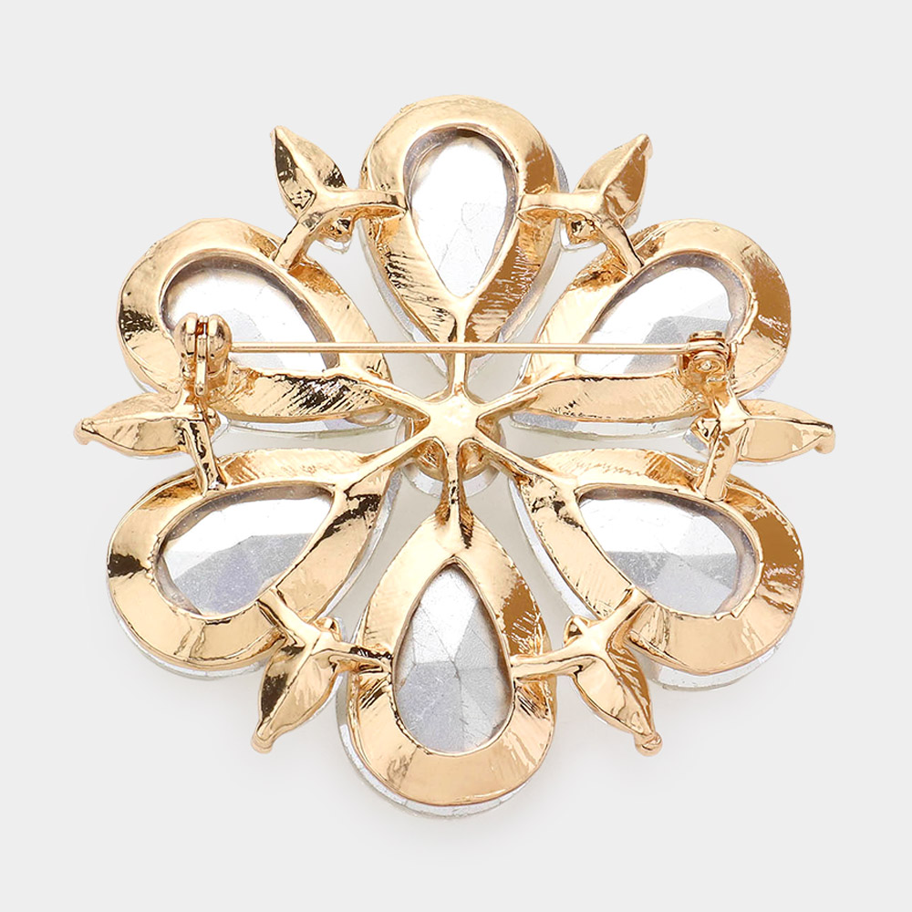 Teardrop Stone Accented Flower Pin Brooch