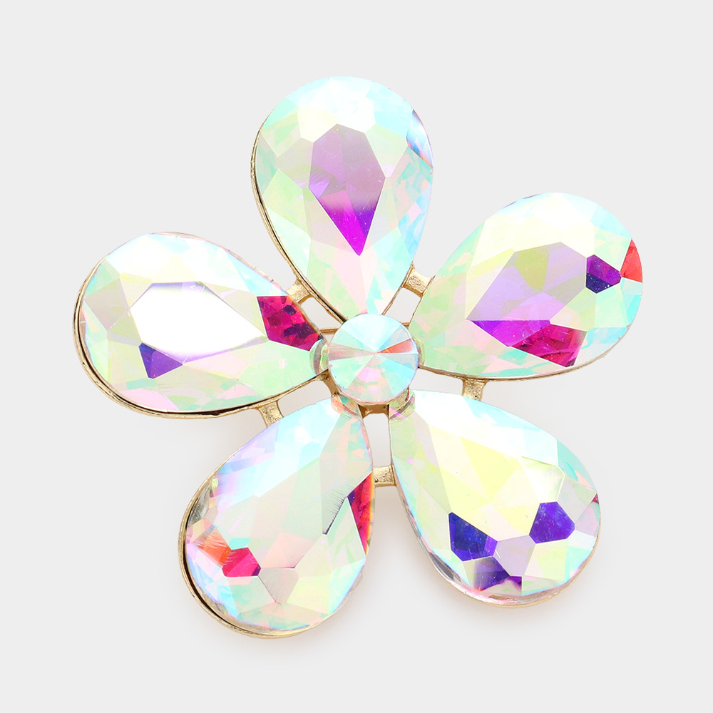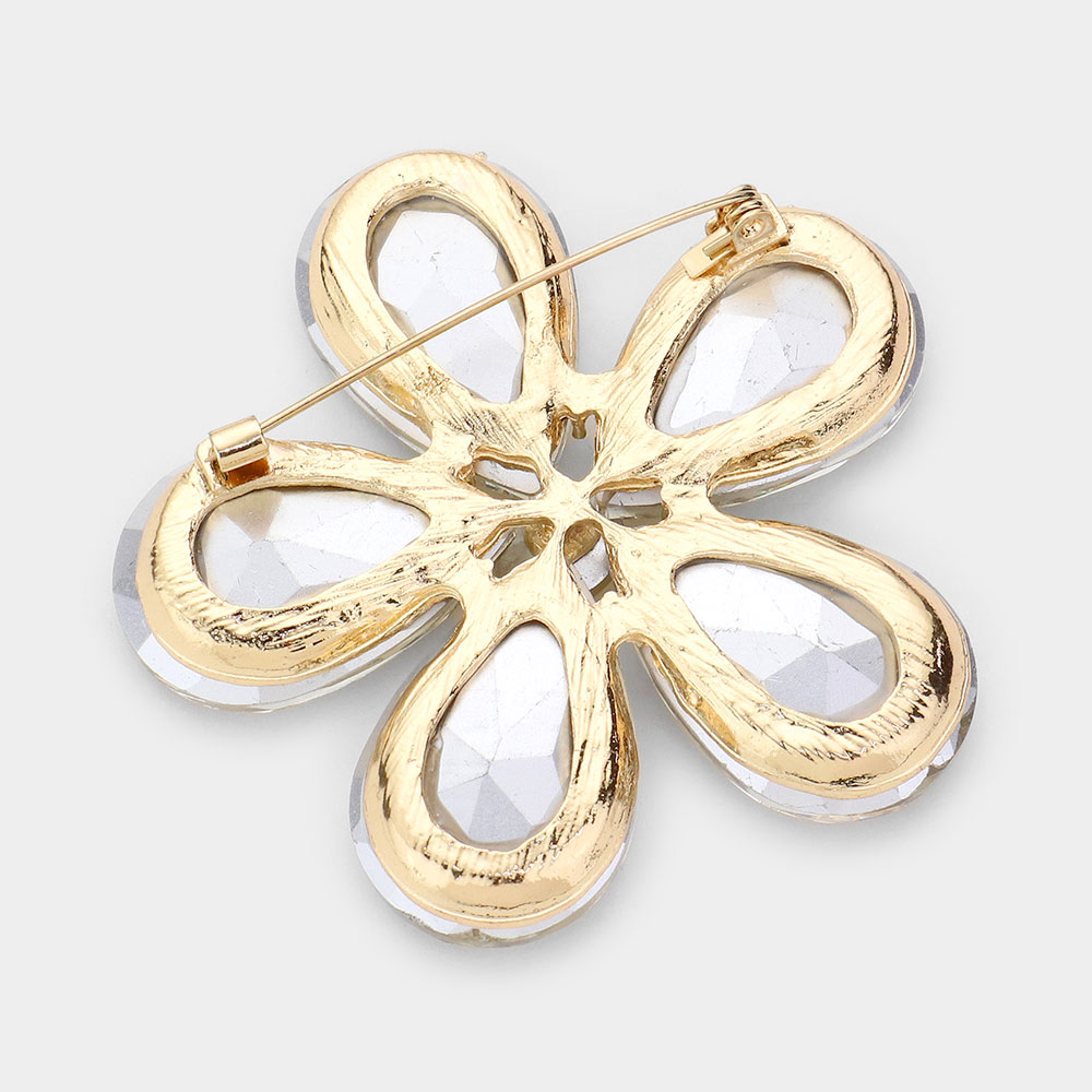 Teardrop Stone Pointed Flower Rhinestone Paved Necklace