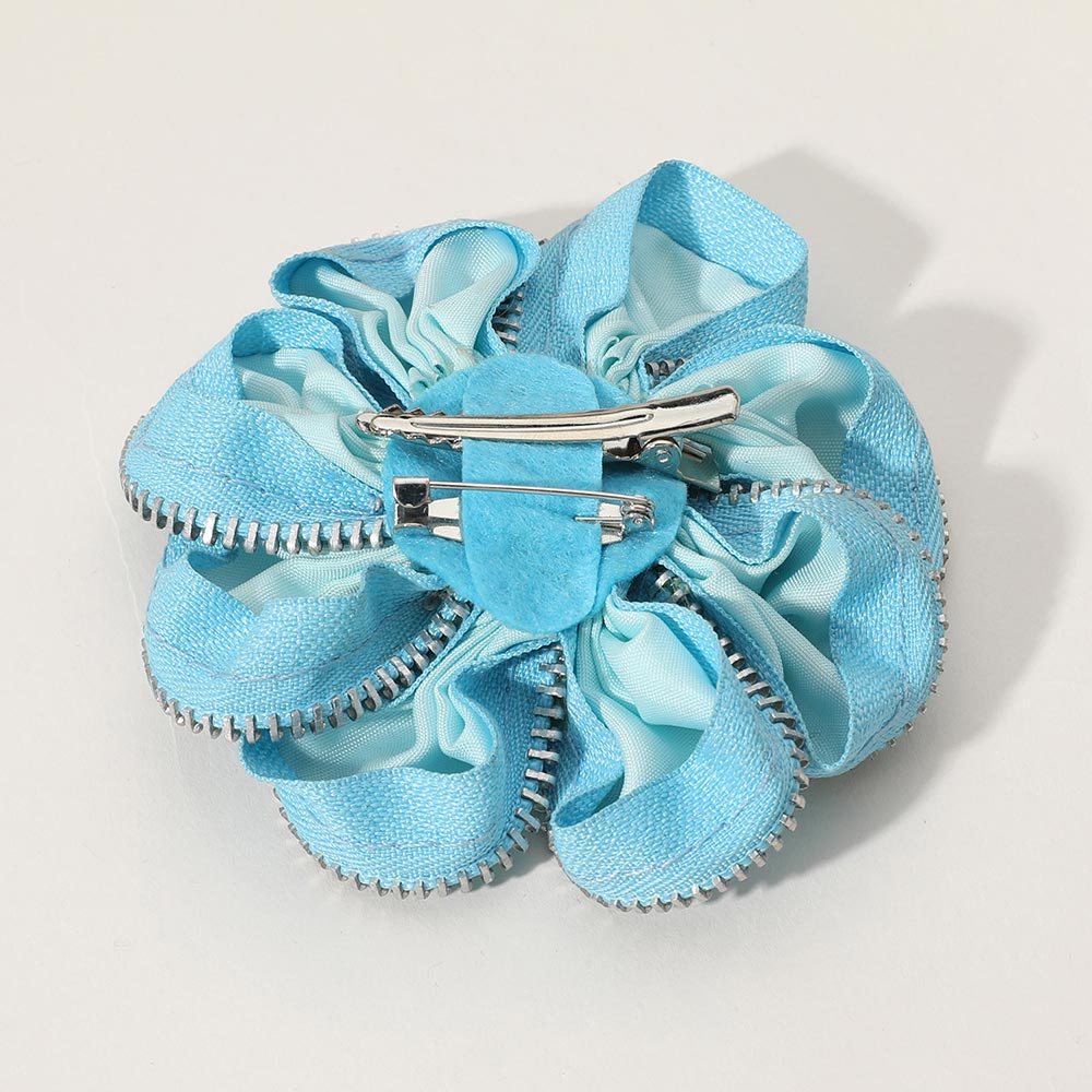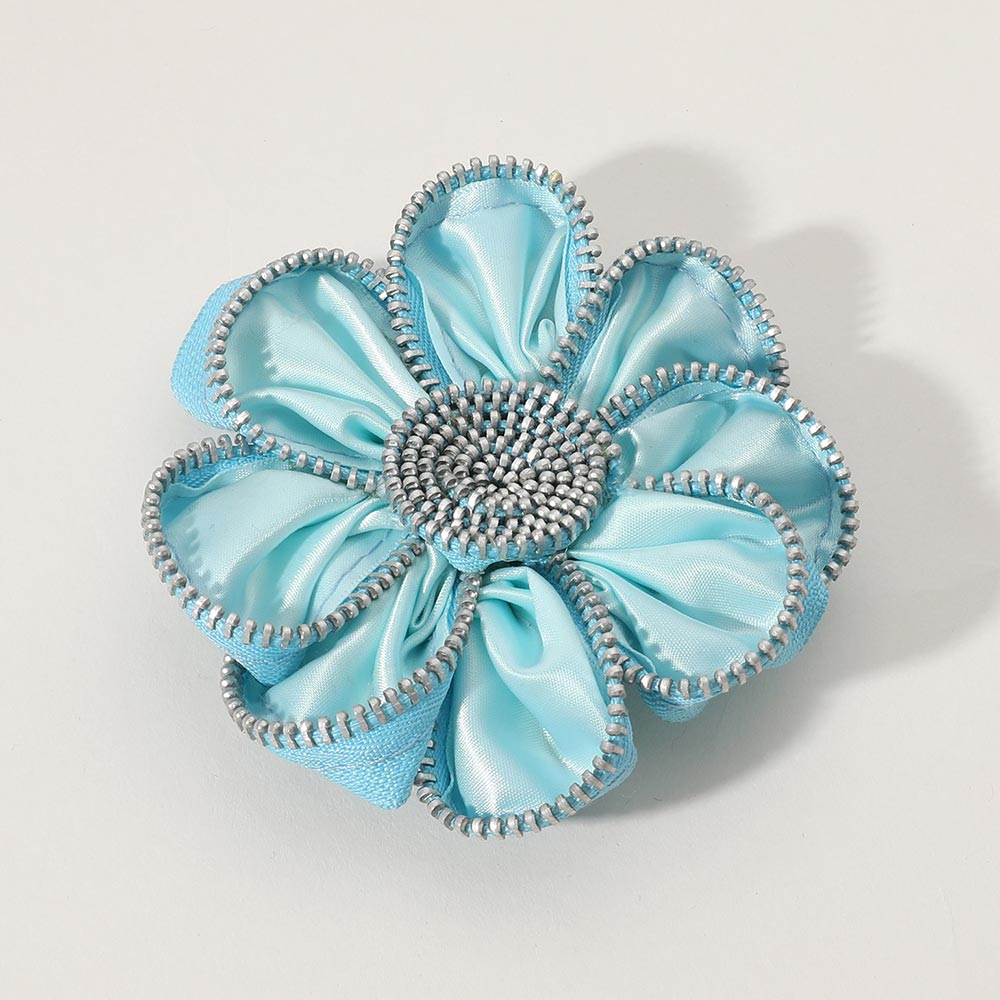 Zipper Trim Edge Satin Flower Brooch / Hair Clip