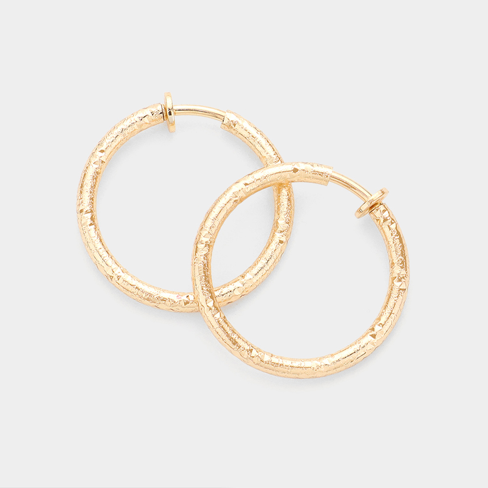 Textured Metal Clip On Hoop Earrings