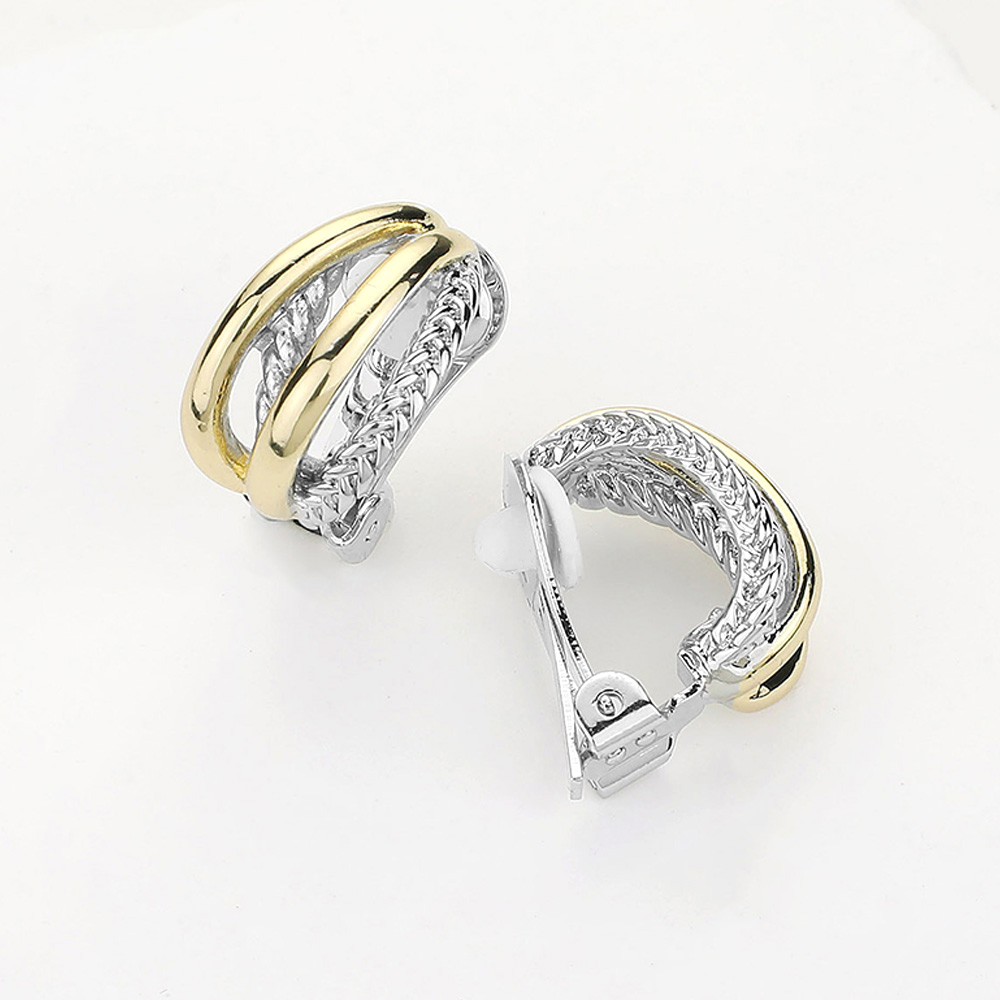 14K Gold Plated Two Tone Crisscross Clip On Earrings